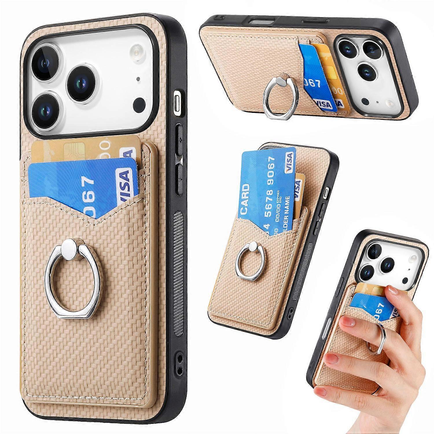 For iPhone 17 Pro Case Card Slots Ring Holder Kickstand Phone Cover - Apricot