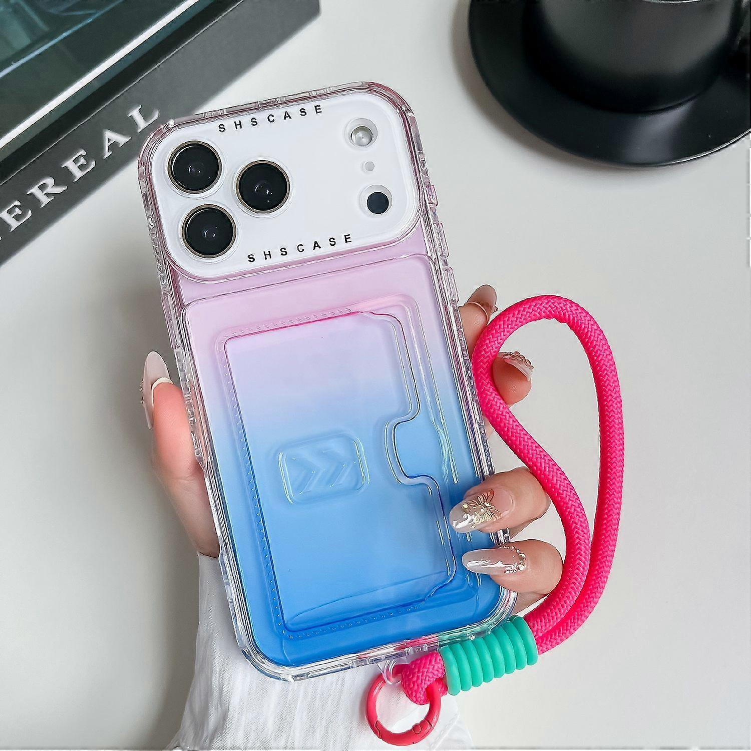 For iPhone 17 Pro Max Case Card Holder Gradient Color PC + TPU Phone Back Cover with Lens Film Wrist