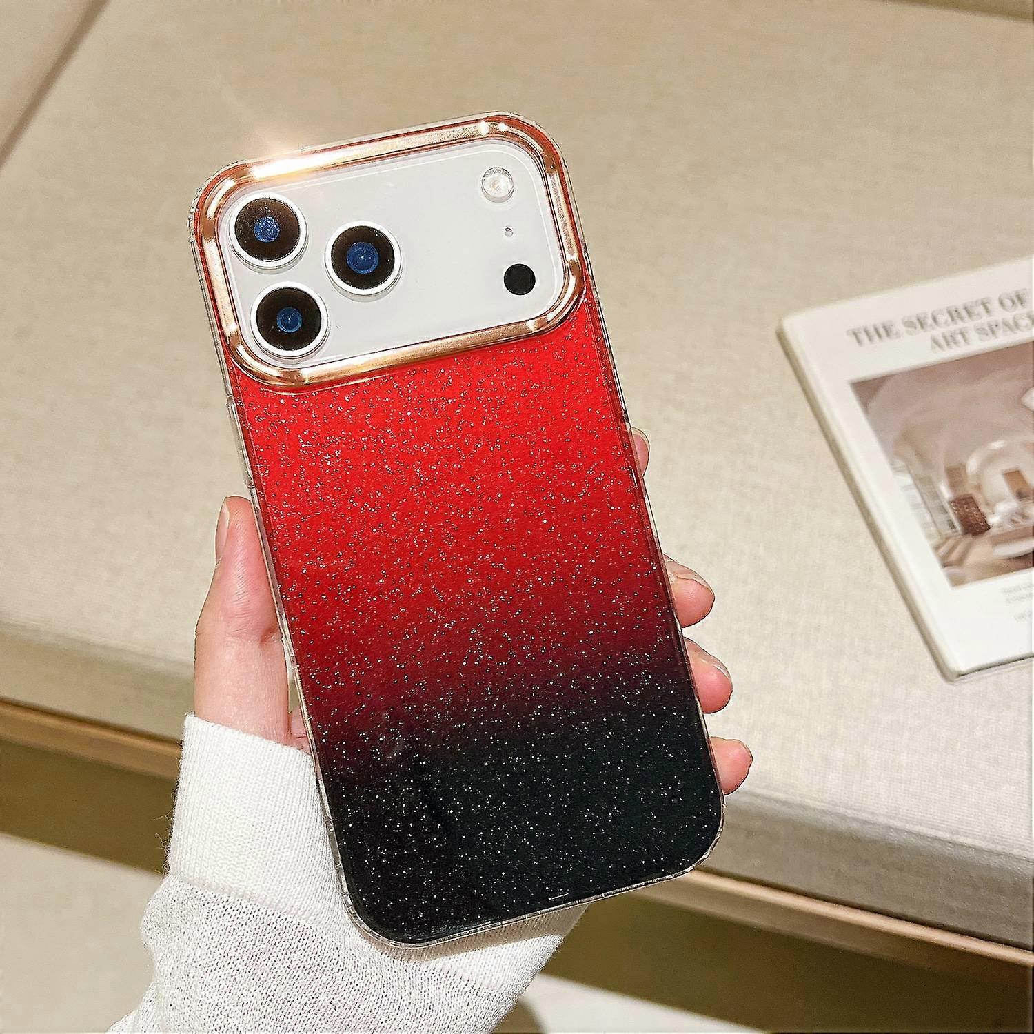 For iPhone 17 Pro Max Case Dual Color Gradient Electroplated Protective TPU Phone Cover - Black Red