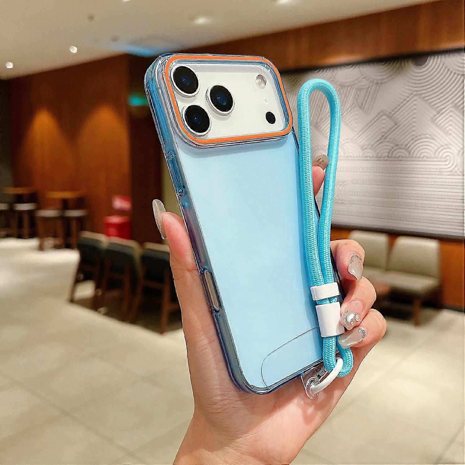 For iPhone 17 Pro Max Case with Wrist Strap Orange Camera Edge TPU + PC Shockproof Phone Back Cover