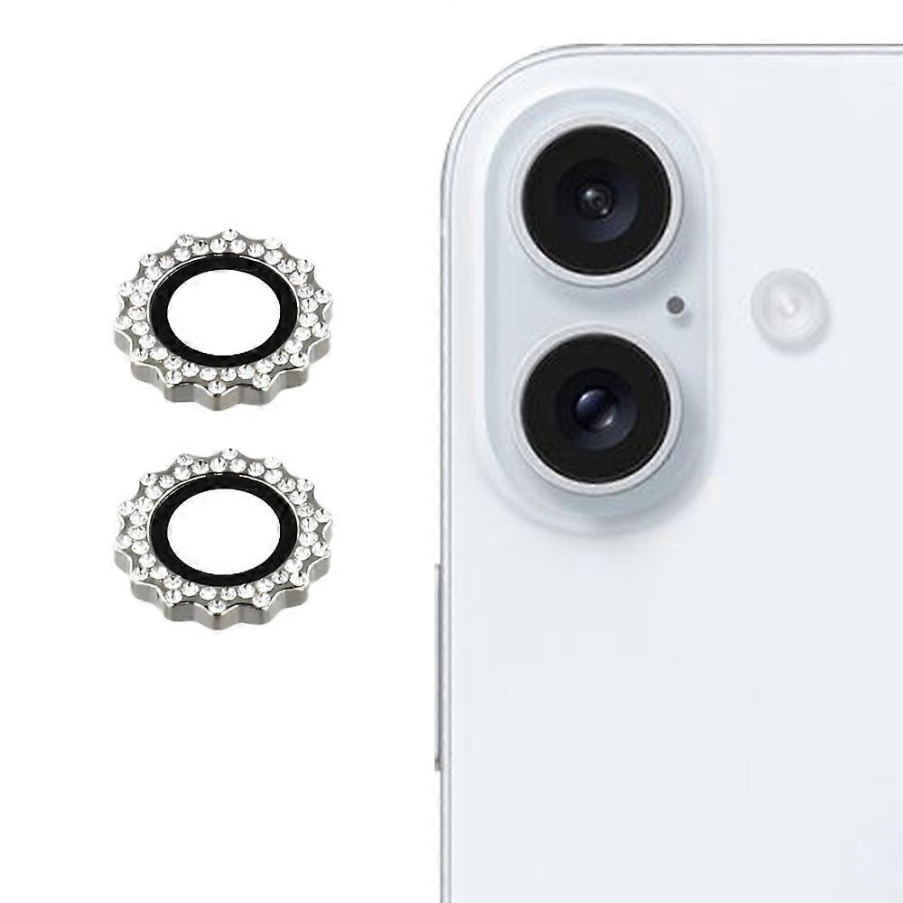 1Set For iPhone 17 Camera Lens Protector Gear Shape Tempered Glass Lens Film Rhinestone Decor - Silv