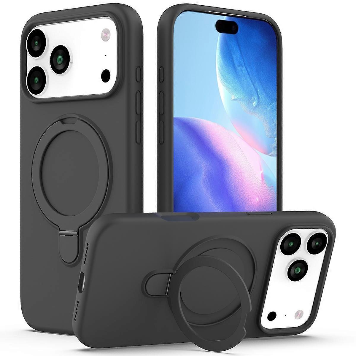 For iPhone 17 Pro Max Case Compatible with MagSafe Kickstand PC + Silicone Phone Cover - Black Grey