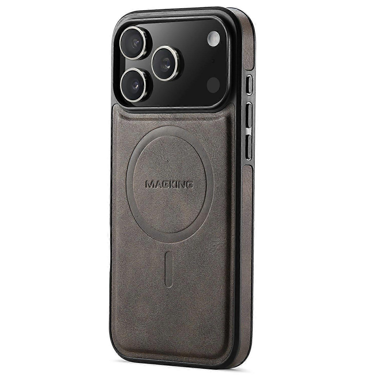 MAGKING K1 Series For iPhone 17 Pro Magnetic Case PC + TPU + PU Leather Phone Cover - Coffee