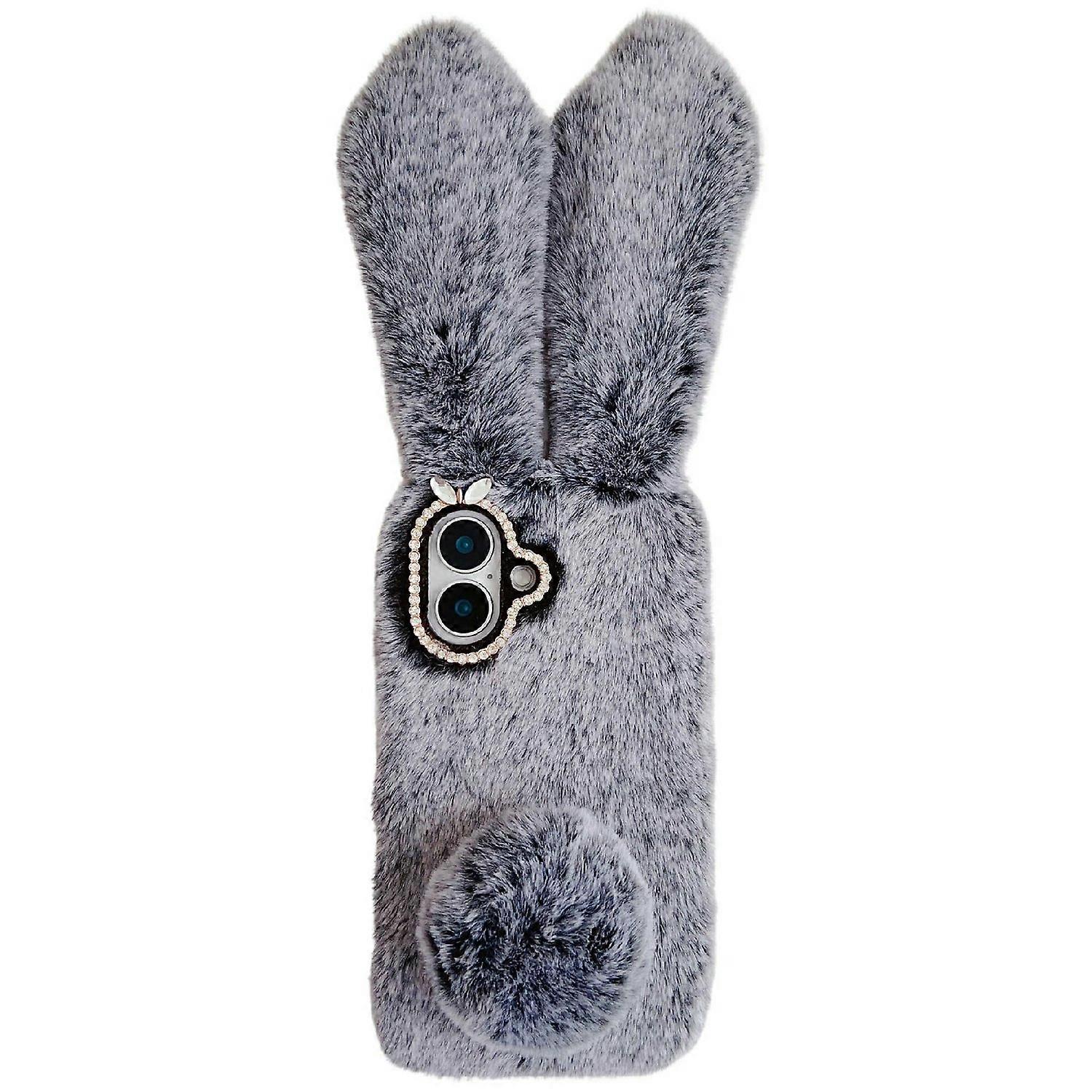 For iPhone 17 Case Plush Cute Bunny Winter Fluffy TPU Phone Cover - Dark Grey