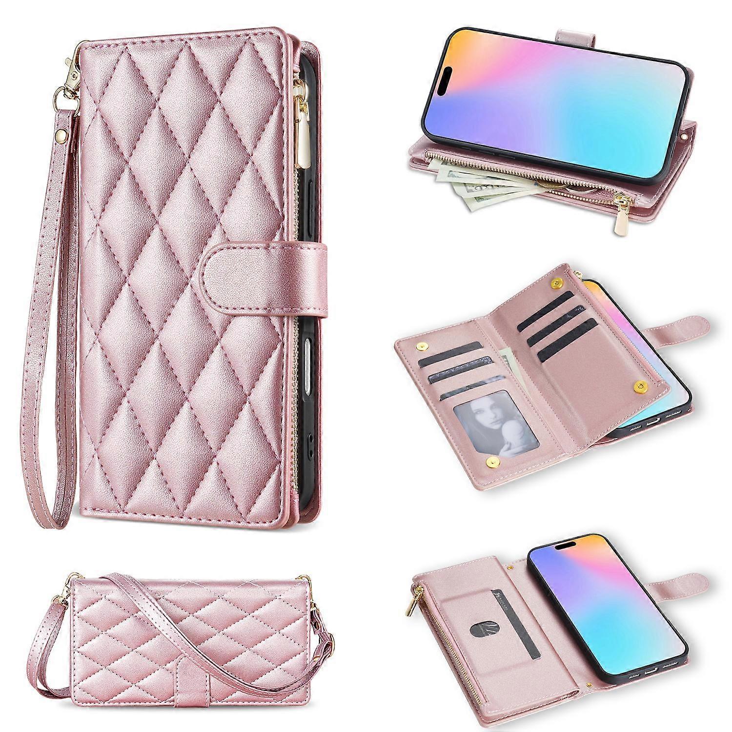 •【Good Protection】Made from PU leather with a slim-fit TPU inner case, providing excellent shock absorption and drop protection. With a stylish rhombus stitching design, adding a touch of sophistication to your phone case •【Comprehensive Storage】Designed with multiple card slots and a zippered pocket, allowing you to collect cards, cash, coins, and earphones all in one place for ultimate convenience •【Secure Closure】Features metal snap buttons between the two front covers to keep them from coming apart, and a magnetic clasp to ensure the entire phone case stays securely closed and is not easy to lose •【Adjustable Stand】The adjustable stand allows for multi-angle viewing in a horizontal position, making it easier to watch videos, read, or work hands-free •【All-Around Protection and Convenience】Offers complete protection for your smartphone, preventing shocks, cracks, or scratches. Comes with a handy strap and a shoulder strap (70-140cm) for easy carrying Compatible with: •iPhone 17 Package included: •1 x Phone Case •1 x Wrist Strap •1 x Shoulder Strap •Other items not included