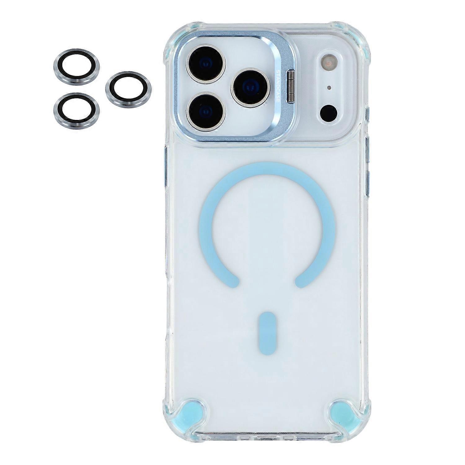 For iPhone 17 Pro Max Magnetic Case TPU PC Clear Phone Cover with Lens Frame Kickstand Lens Film - B