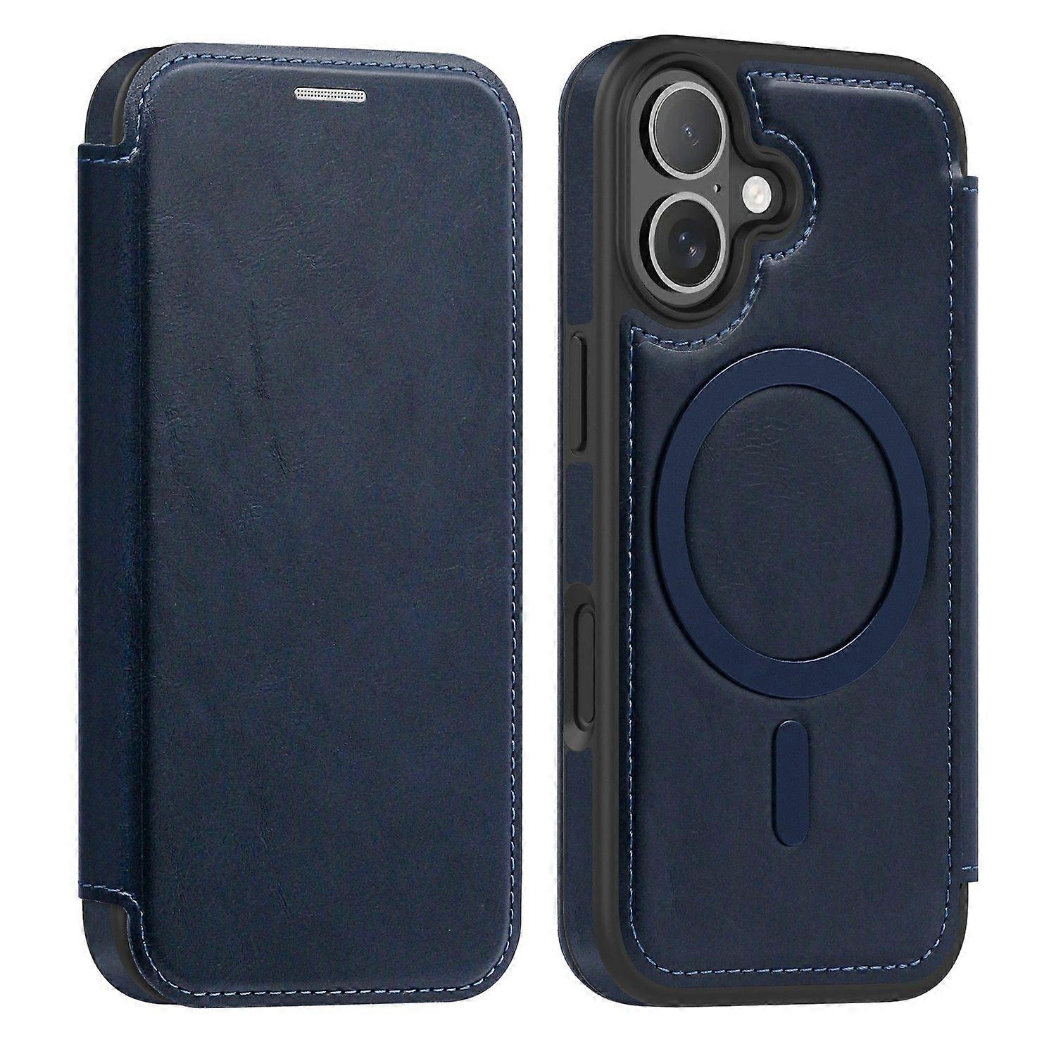 For iPhone 17 Case Compatible with MagSafe RFID Blocking Card Holder Leather Phone Cover - Sapphire