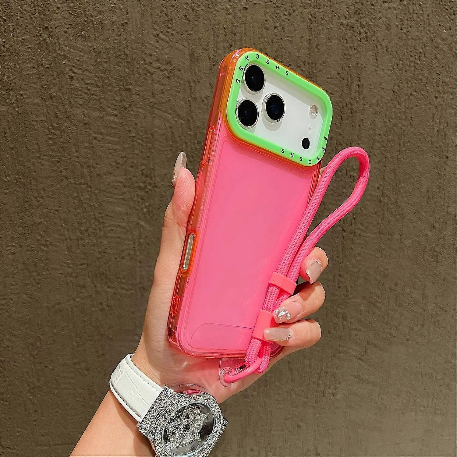For iPhone 17 Pro Max Case Clear Contrasting Colors Shockproof TPU Phone Back Cover with Wrist Strap