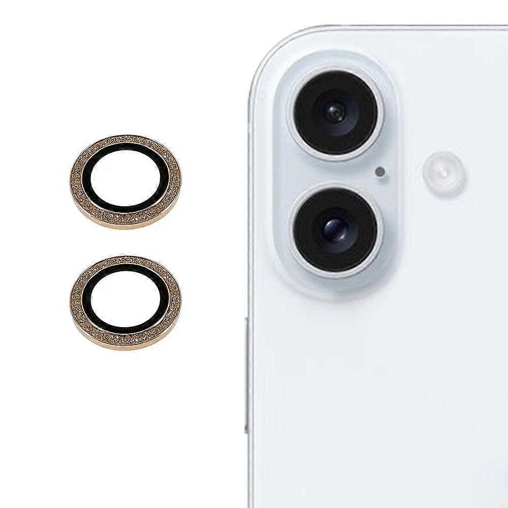 For iPhone 17 Camera Lens Protector Set Bling Glitter Metal Ring Tempered Glass Lens Film - Gold