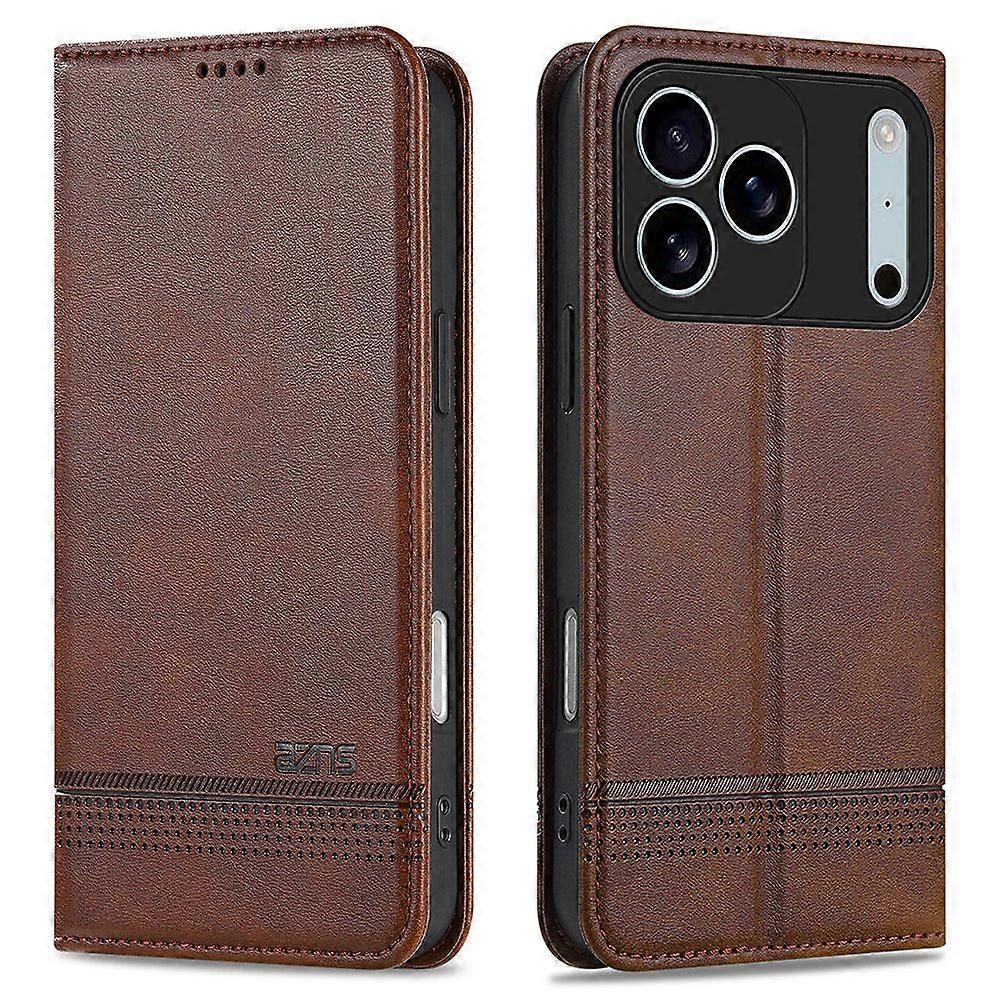 AZNS For iPhone 17 Pro Case Cowhide Texture PU Leather Wallet Phone Cover - Coffee