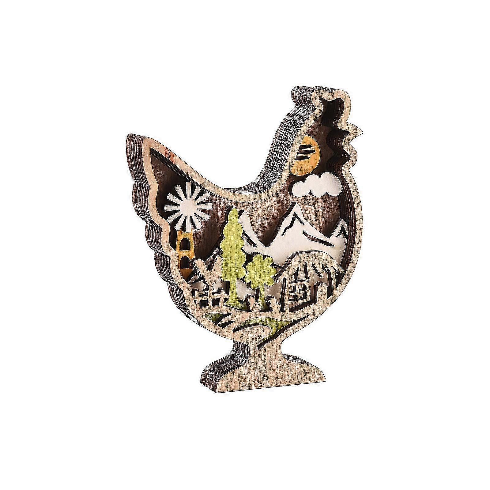 Wooden Animal Statue without Light Hollow Hand Carved Artwork Vivid for Home Office-C-