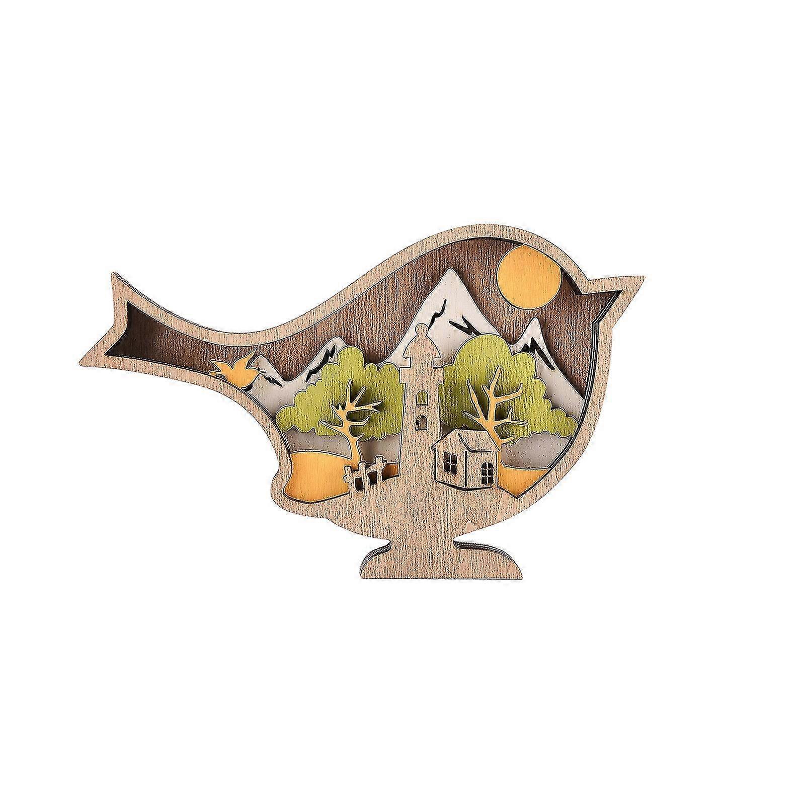 Wooden Animal Statue without Light Hollow Hand Carved Artwork Vivid for Home Office-B-