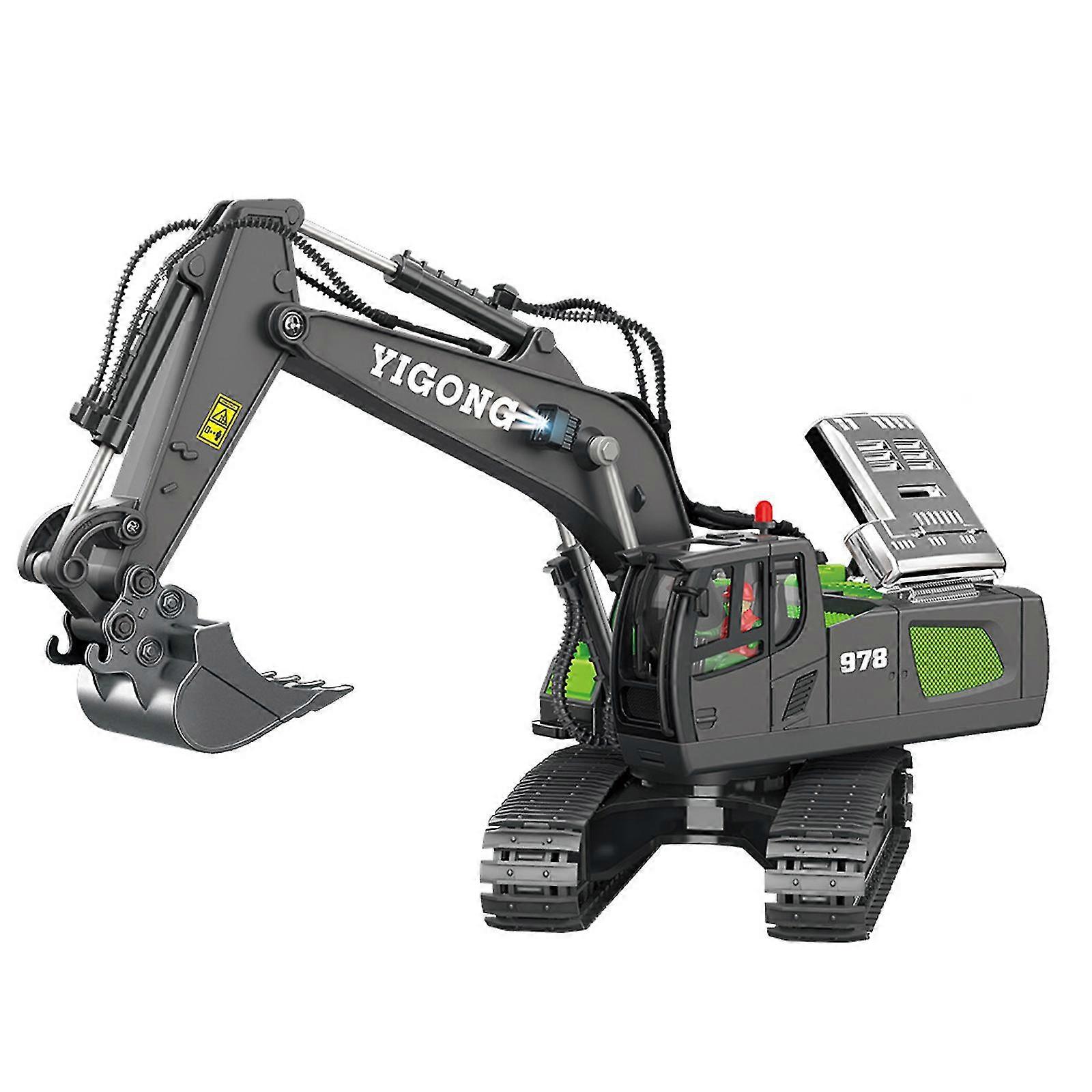 Remote Control Excavator Toy --onstruction Toys with Metal Shovel, Lights, Sounds 2.4Ghz--graygreen