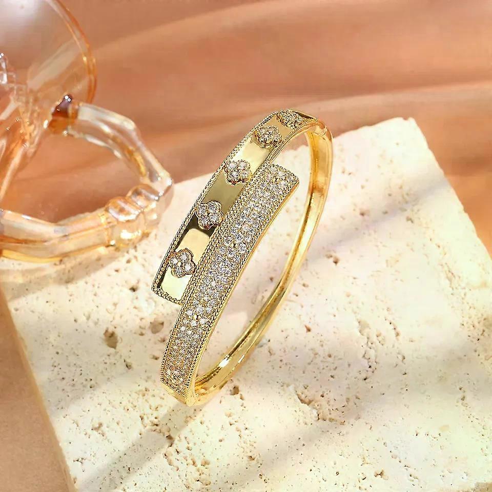 Rakol New Luxury Full Shiny CZ Four-leaf Flower Open Bracelet for Women Premium Wedding Party Jewelry Birthday Gift