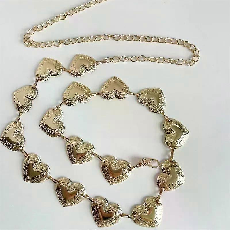 Vintage Women Waist Belt Female Metallic Love-Heart Chain Belt Tassel Waist Chain Belt Women Decorative Metal Body Jewelry