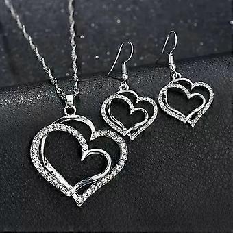 Sparkling Rhinestone Double-layer Hollow Heart-shaped Pendant Necklace Women s Temperament Versatile Jewelry Set
