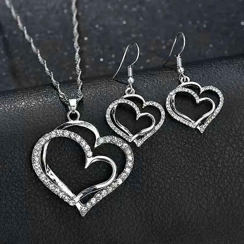 Sparkling Rhinestone Double-layer Hollow Heart-shaped Pendant Necklace Women s Temperament Versatile Jewelry Set _x000D_ _x000D_
