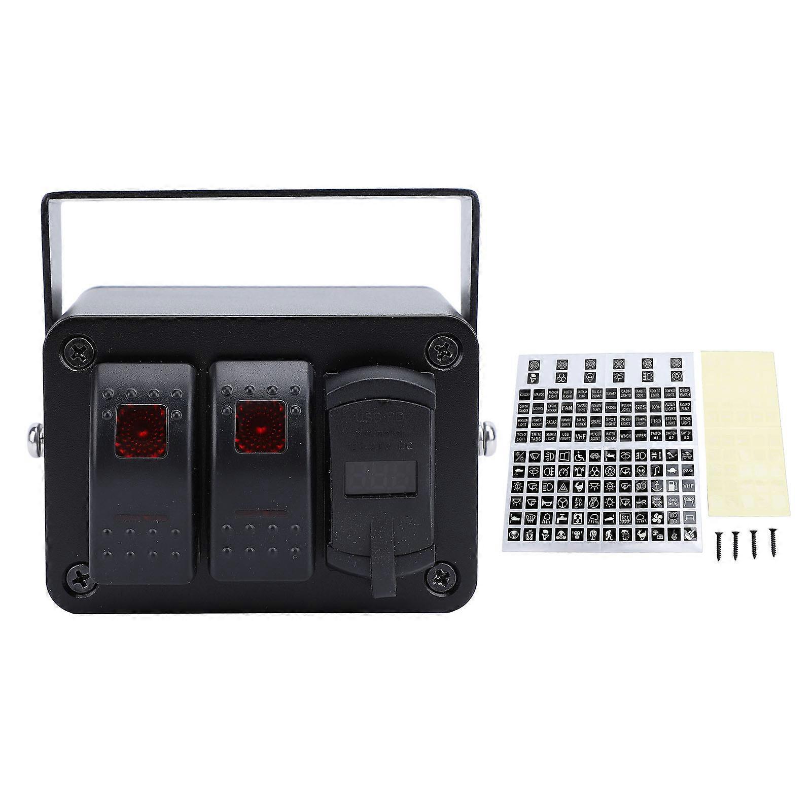 2 Gang Toggle Switch Box with Voltage Meter PD Type C QC3.0 USB Port Waterproof DC 12 to 24V for Car Truck Boat RV Trailer UTV ATV
