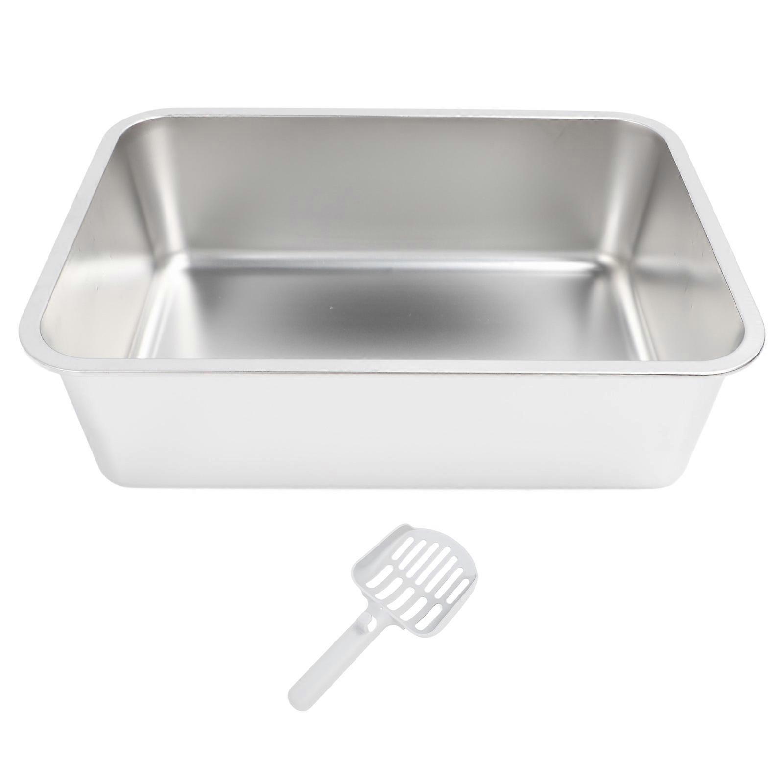 Stainless Steel High Sides Anti Splashing Easy to Clean Cat Litter Box for Small Medium Large Cats