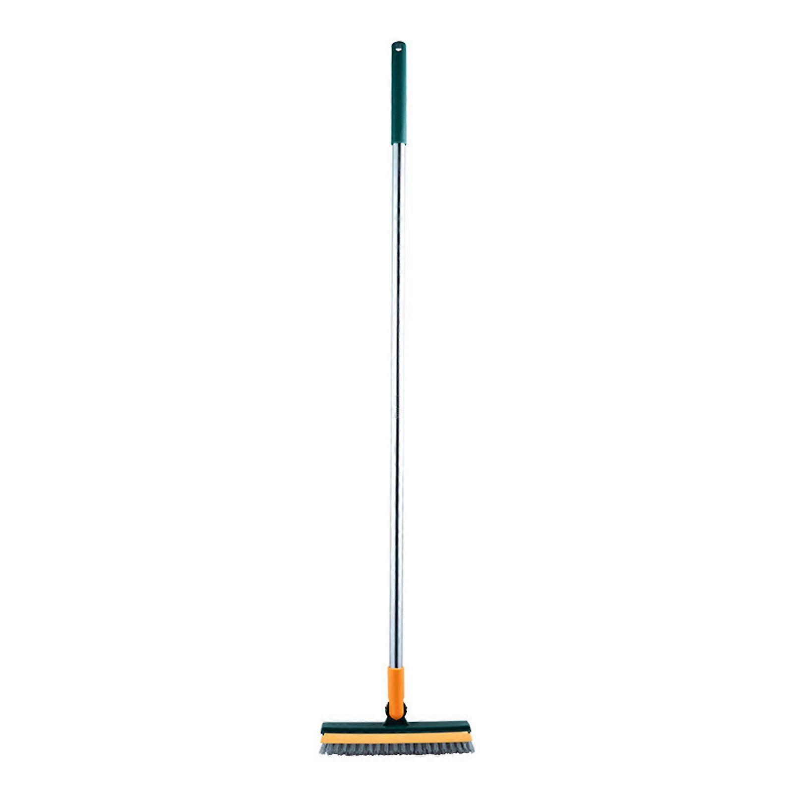 2 in 1 Floor Brush Scrubber Long Handle Rotating Grout Scrape V Shape Cleaning Brush with Squeegee
