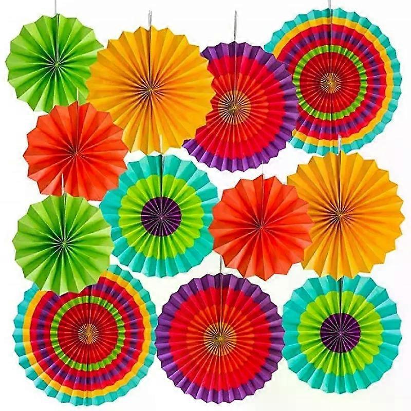 12 Paper Fan Mexican Fiesta Cinco Fiesta Birthday Party Background Decor Colorful Paper Fans Carnival Kids Party DIY Decorations