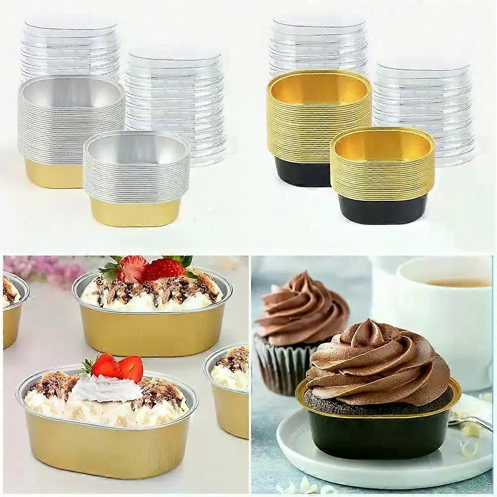50pcs Oval Semi-Cooked Cheese Molds Cake Cups with Lids Snacks Desserts Pudding Muffins Baking Tools Party Wedding Mini Cups