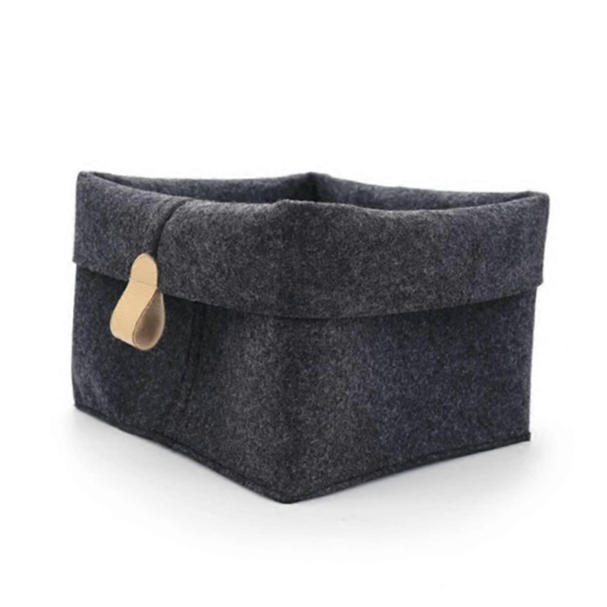 - Optimize your workspace with this felt storage basket, designed specifically for desktop organization. It effectively holds various items, ensuring a tidy and efficient environment. - Versatile in function, this basket is perfect as a toy storage bin, providing a dedicated space for toys and preventing clutter on your desktop. - Its sleek black color enhances any desktop setting, combining functionality with a touch of elegance. - Organize magazines, newspapers, books, and DVDs effortlessly. This basket helps keep your reading materials and media neatly arranged and easily accessible. - Essential for anyone seeking to declutter their workspace, this storage basket aids in creating a more organized and productive area for work or relaxation. Use Scenarios: 1. Keep your office desk free of clutter by storing pens, notepads, and other supplies in this stylish basket. 2. Create a designated play area for children by using this basket to store toys, making clean-up quick and easy. 3. Organize your media collection by keeping DVDs and books within reach, ensuring your favorite titles are always at hand. Constructed from durable felt material, this storage basket is built to last while maintaining a lightweight profile, making it easy to move as needed. Enhance your organization and style with this functional and aesthetically pleasing solution.