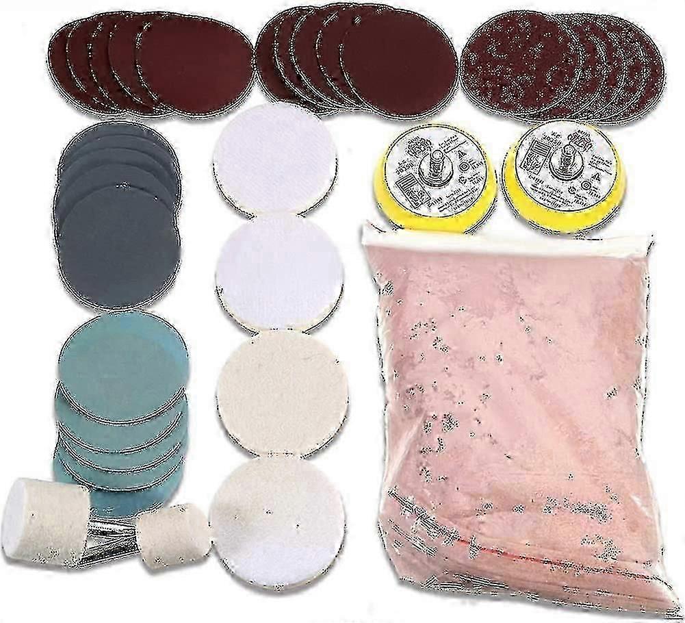 Professional glass polishing pads for car windows - 34 pack with 230g cerium oxide & 50mm discs