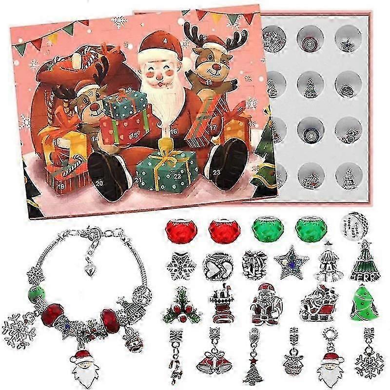 Christmas Bracelet Beaded Gift Box 24 Countdown Blind Box Children's Bracelet Diy Large Hole Bead Jewelry Set -DF