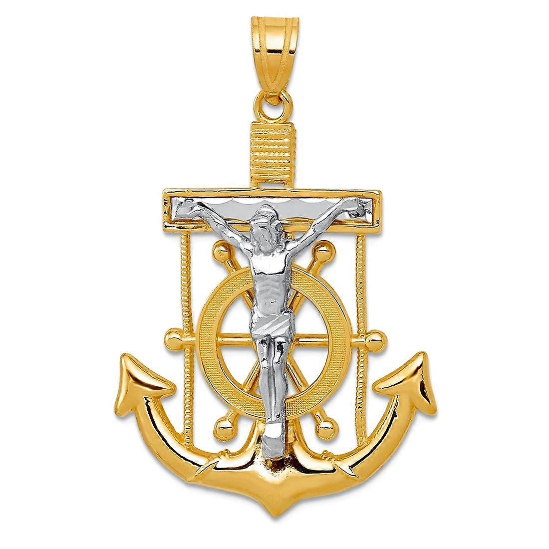 27mm 10k Solid Gold Two tone Sparkle Cut Mariners Religious Faith Cross Pendant Necklace Pendant for Women