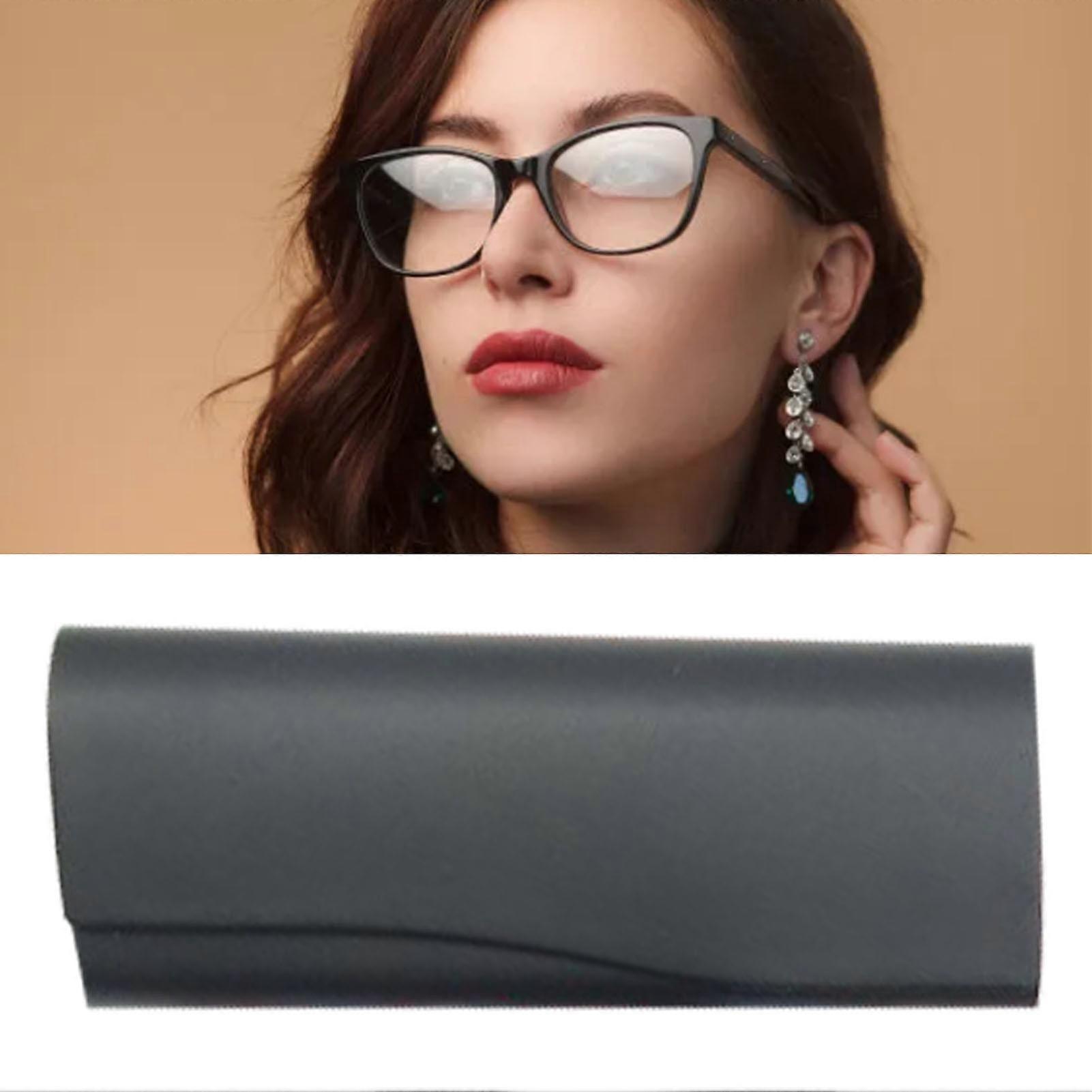 Black PU Leather Metal Eyeglasses Case Lightweight Portable