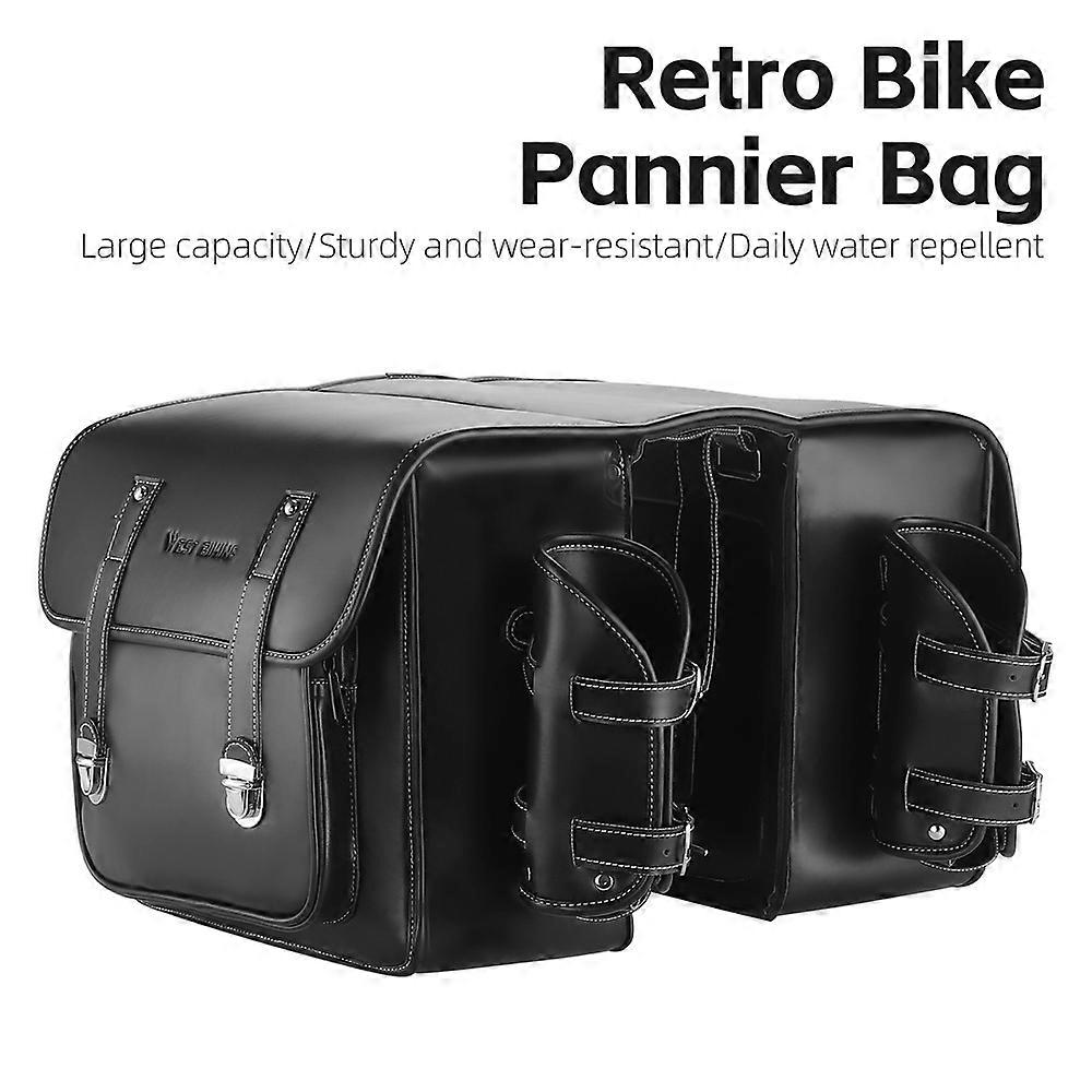 Leather Bike Rearseat Bag 10L+10L, 12.2"x9.8"x5.9", Black/Brown