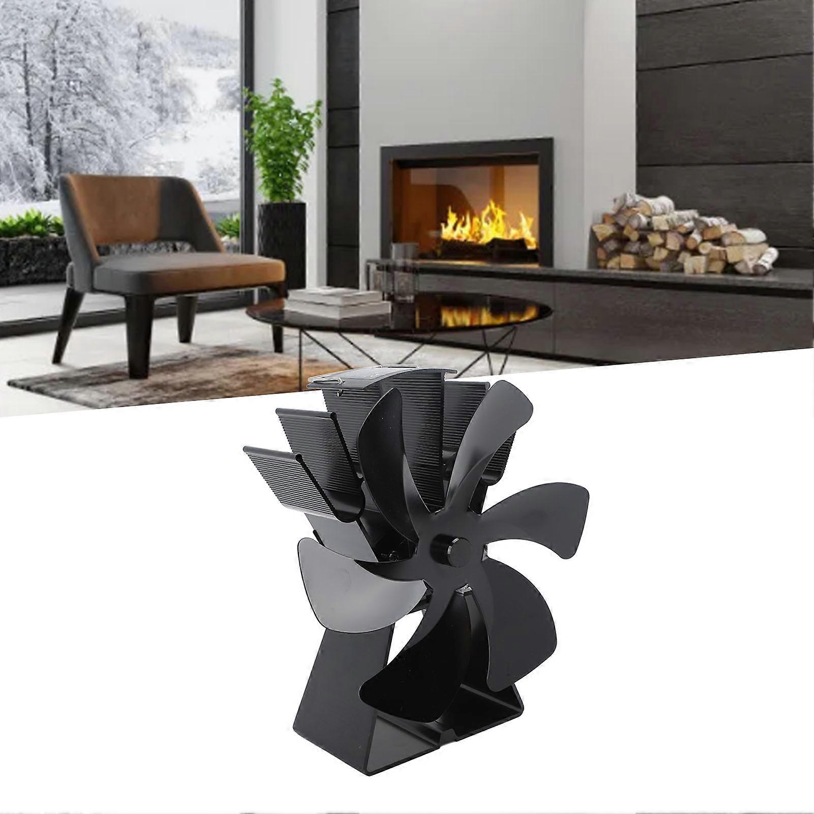6 Blade Heat Powered Stove Fan, Aluminum Alloy, Black, 787g