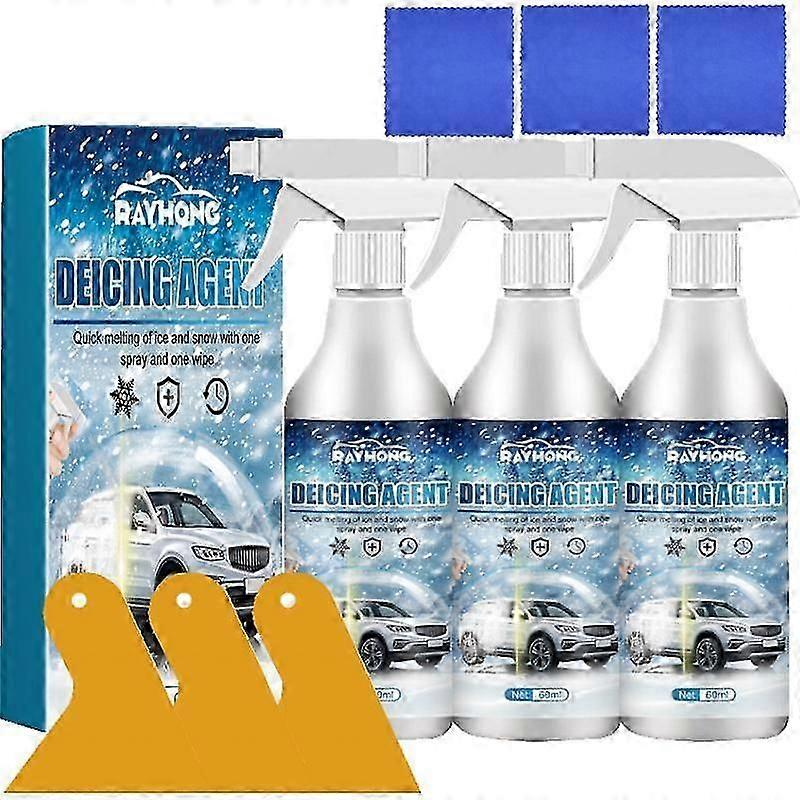 3-Pack Car De-Icer Spray for Windscreen, Glass, and Keyhole Defrosting - Essential UK Winter Supply