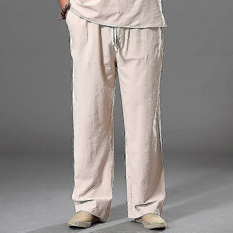 Pantalon d'été grande taille en coton pour homme, coupe large, en lin, style jogging, grande taille, ample.