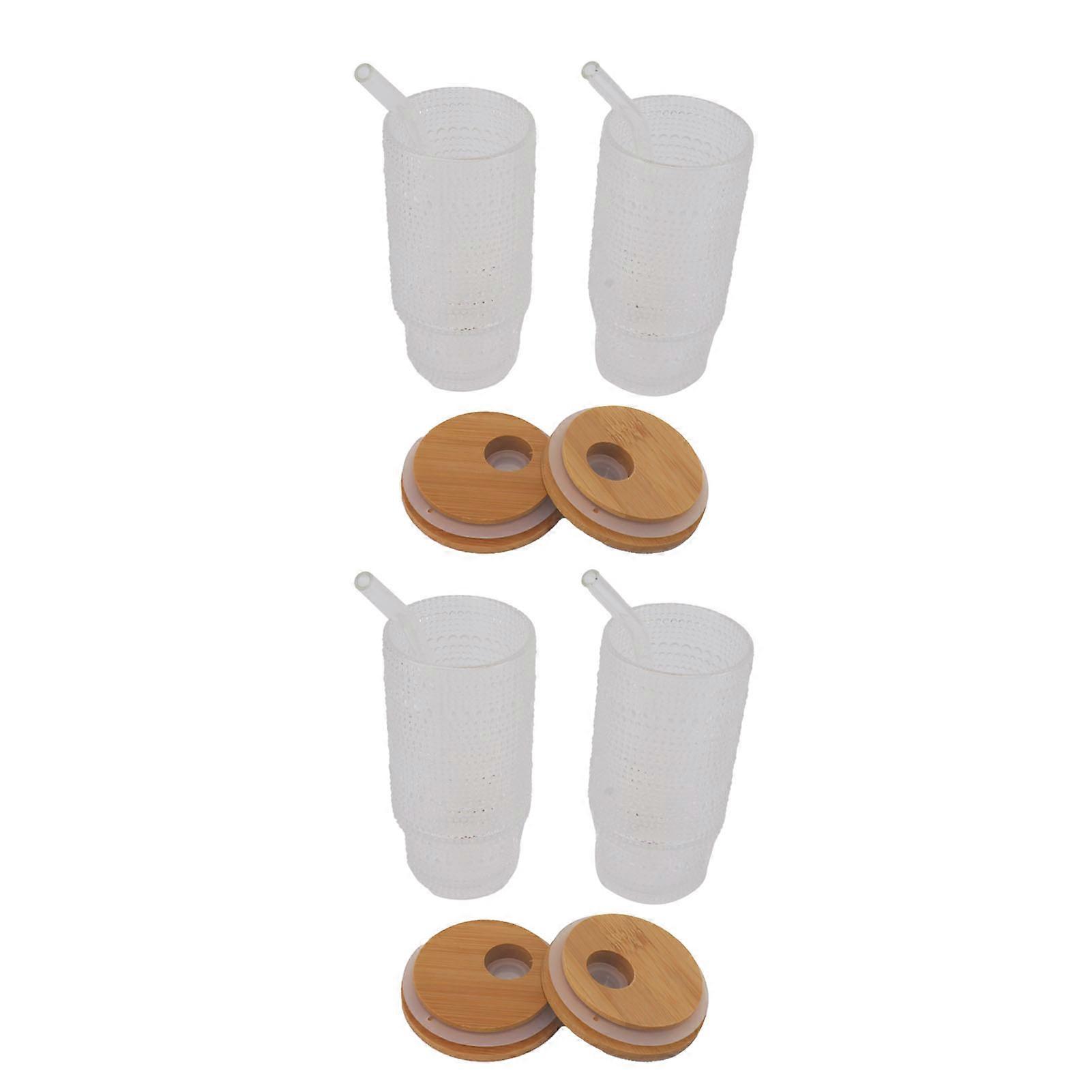 11oz Vintage Glass Cups with Bamboo Lids & Straws 6.8x5.6x14cm