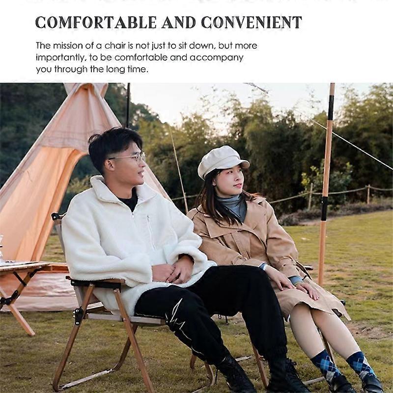 Comet Outdoor Folding Beach Chair with Teak Armrests, M/L, Black/Khaki