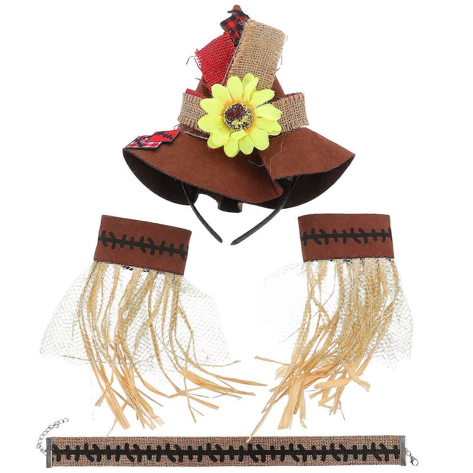 4pcs Halloween Costume Accessories Straw Hat Wristband Necklace Decoration Cosplay Adornment For Adults Carnival