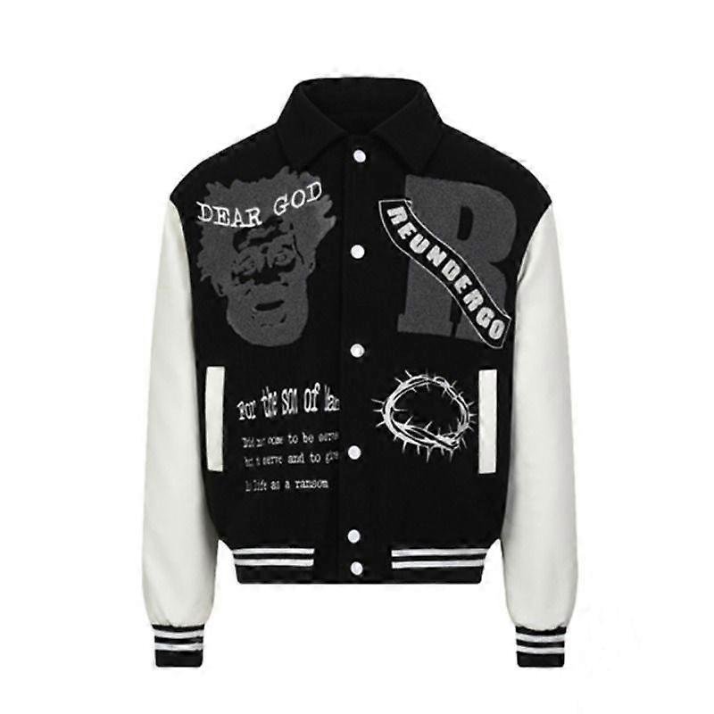Heavy American Vintage Stitching Contrast Leather Towel Embroidered Baseball Suit Loose Quilted Jacket Men's Coat