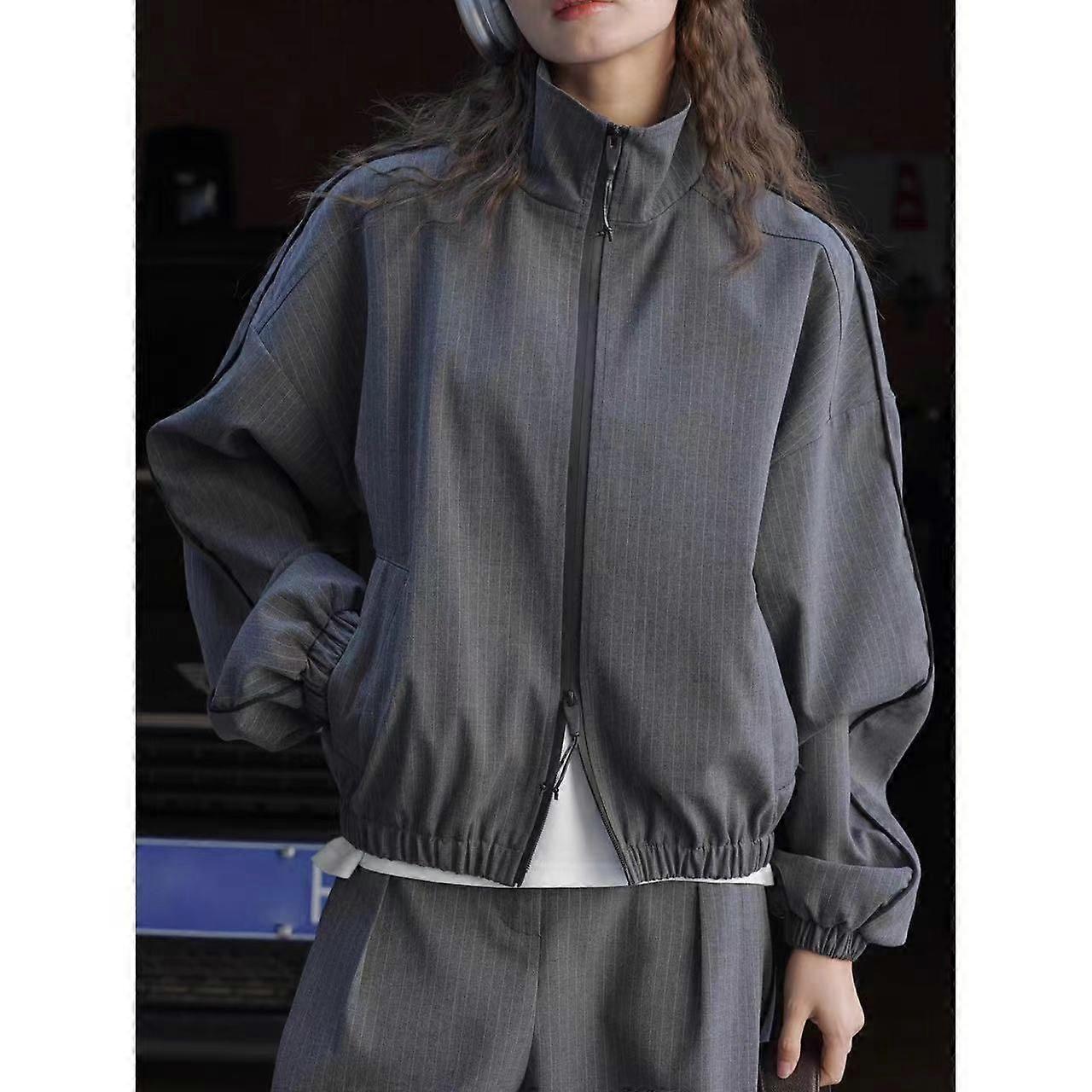 Sleeve Style:Regular Sleeves Popular Element:Patchwork Thickness:Medium Collar Type:Stand-Up Collar Fabric Name:Tr Fabric Main Fabric Composition:Polyester (Polyester Fiber) Main Fabric Component 2:Viscose Fiber Pattern:Stripes/Checks Layout:Regular Technique:Collage/Splicing Garment Length:Regular Style (50Cm< Garment Length 65Cm) Sleeve Length:Long Sleeves Color:Navy Blue Stripes Colour:Grey Stripes Size:S Size:M Style Type:Japanese And Korean Casual Front Flap:Zipper Main Fabric Composition Content:50% (Inclusive) -70% (Exclusive) Style:Casual Style Applicable Gender:Female Main Fabric Component 2 Content:Less Than 30