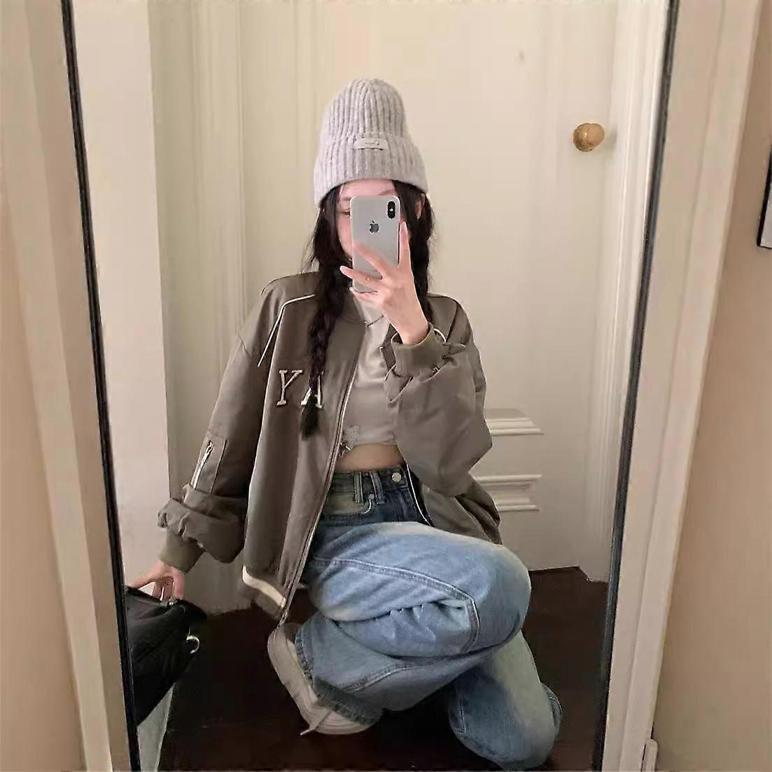 # American Letter Embroidered Baseball Suit Coat Women's Autumn Loose Casual Jacket Slimming Long Sleeve Top
