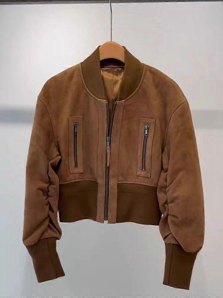 European Brand Maillard's Short Baseball Jacket Is Now In Vogue. Outerwear And Leather Jackets Are Popular For Women In Autumn