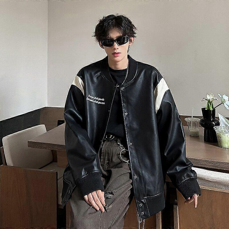 Spring Outfit: Cool Leather Jacket For Men, Blue Motorcycle, Leather Jacket, Loose Coat P02