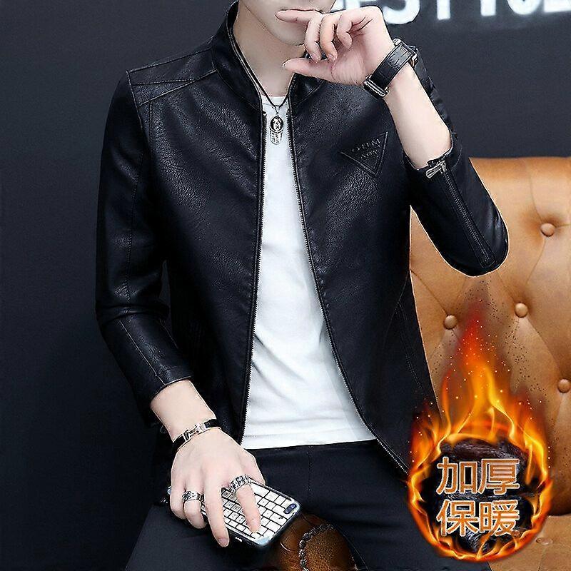 Casual Fleece Leather Jacket For Autumn, Men's Korean-Style Slimming, Trendy And Cool Blue Leather Jacket