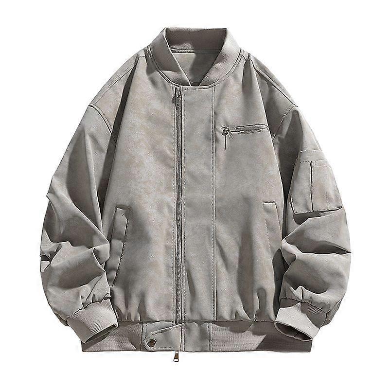 American Motorcycle Baseball Uniform Washed Leather Coat Men's Spring Autumn Lapel Loose Fly