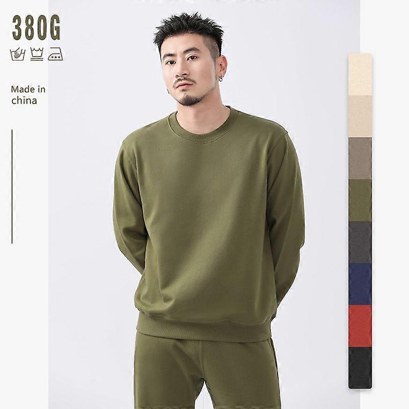 380G Heavy Xinjiang Cotton Loose Sweater Men's Autumn And Winter Solid Color Top Japanese Round Neck Base Shirt