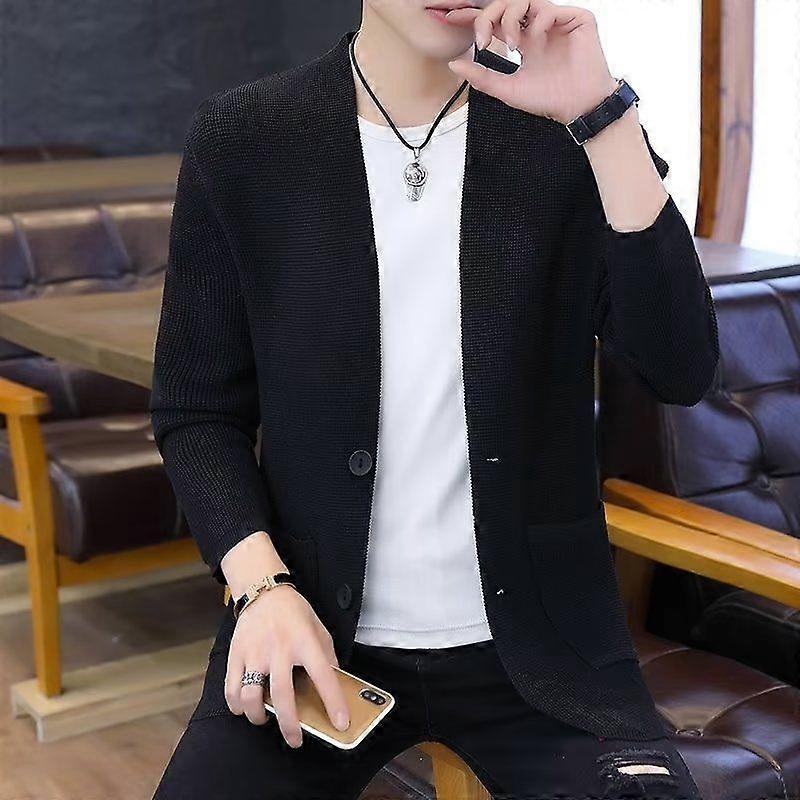 Spring And Autumn Jacket, Men's Korean-Style Slim-Fit Knitted Cardigan, Autumn Trendy Thin Coat, Men's Casual And Cool Top