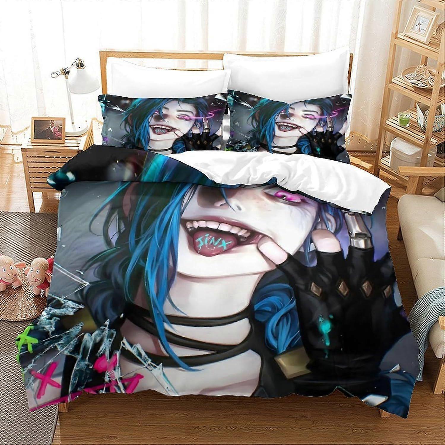Arcane Duvet Cover Set for Kids Teens Adults,Soft Microfiber Bedding Set,Jinx Character Quilt Cover with 2 Pillowcases,Hypoallergenic,Fade Resistant,E
