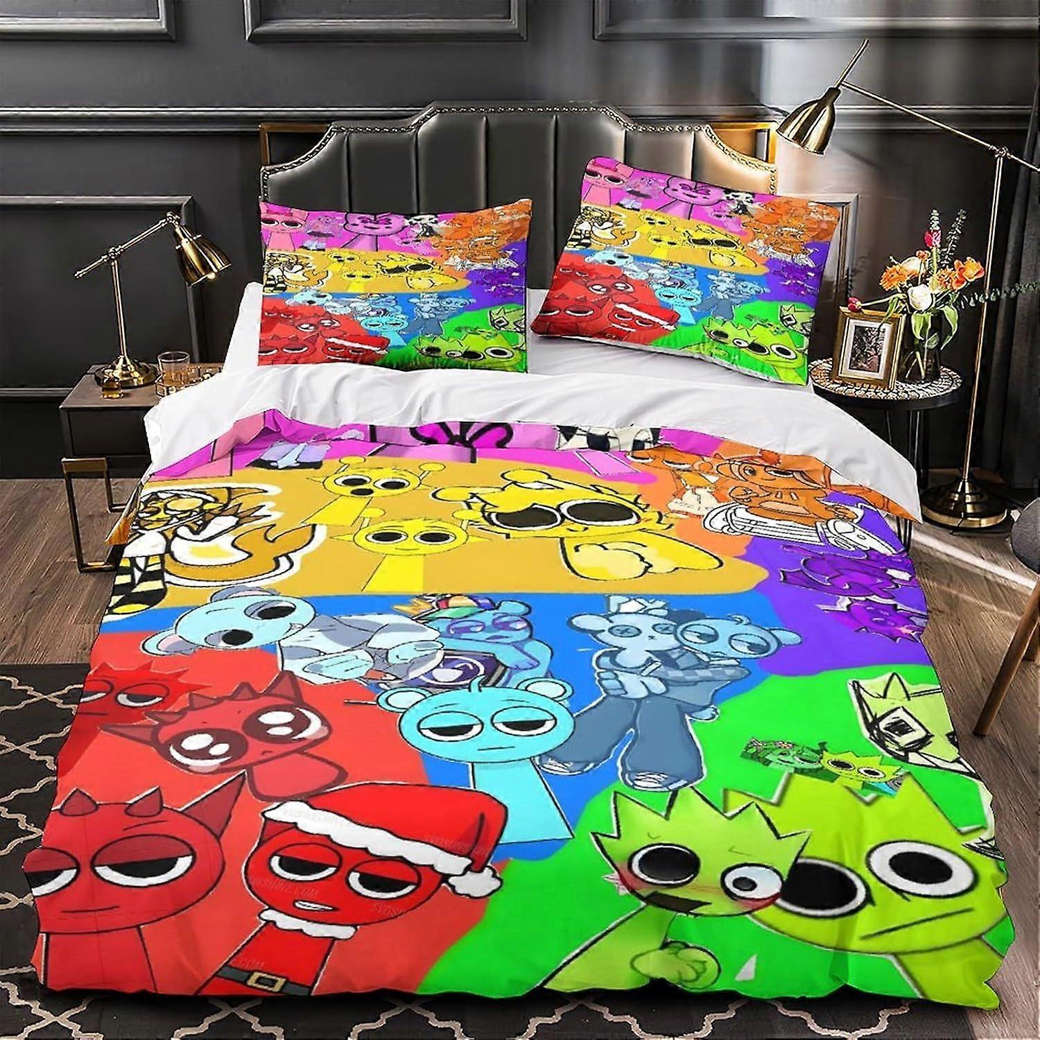 Sprunki for Boys Girls Comforter Covers 3D Print Cute Cartoon Game Quilt Cover Duvet Cover with Pillow Cases Bedding Set Soft Microfiber with Zipper C