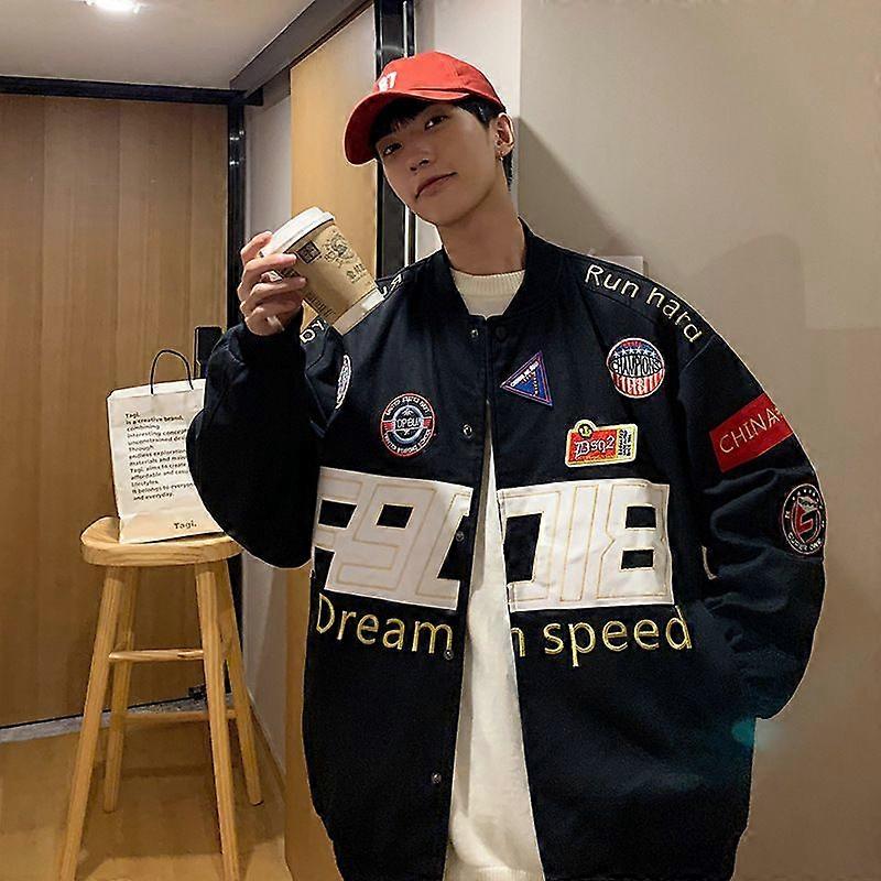 Vintage Baseball Jacket, Oversized American Retro Racing Jacket, Men's Design Sense, Niche Embroidered Jacket